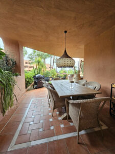 Esta hermosa y acogedora propiedad de 3 dormitorios y 2 baños se encuentra en uno de los desarrollos más exclusivos en primera línea de playa de Estepona. El amplio salón-comedor con cocina americana y el dormitorio principal ofrecen acceso directo a la terraza, que conecta con el jardín privado, creando una experiencia de vida interior–exterior perfectamente integrada. El precio de compra incluye una plaza de aparcamiento privada en el sótano y un trastero.