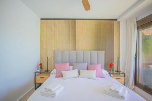 Apartamentos renovados con 3 dormitorios, salón, cocina, dos terrazas, con todas las comodidades en Las Salinas. Los apartamentos están situados a 200 metros de la playa, a 8 km de Estepona, a 18 km de Marbella y a 34 km de Ronda. Ofrece 2 piscinas compartidas al aire libre, 1 piscina cubierta, sauna, gimnasio y conexión Wi-Fi gratuita. El dormitorio principal tiene baño privado, cama extragrande, TV grande, armario amplio y acceso privado a la terraza. El segundo dormitorio tiene dos camas separadas, mesita de noche, armario, TV grande y acceso a una pequeña terraza. El tercer dormitorio tiene dos camas separadas, mesilla de noche, armario, TV grande y acceso a una pequeña terraza. El segundo cuarto de baño con ducha y WC tiene una entrada independiente desde el pasillo compartido. La cocina está equipada con lavavajillas integrado, frigorífico, vitrocerámica, horno, microondas, campana extractora, hervidor, tostadora y cafetera. El salón tiene una gran TV de pantalla plana, una gran mesa de comedor para 6 personas, un gran sofá esquinero y acceso a una gran terraza soleada. También hay una sala de lavandería con lavadora y secadora, tabla de planchar y iron.The apartamento ha dedicado plaza de aparcamiento en el aparcamiento undergounf y un trastero.