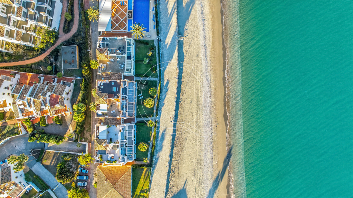 El complejo cuenta con una arquitectura andaluza clásica, una gran piscina comunitaria rodeada de exuberante vegetación y acceso directo a la playa y al paseo marítimo, ideal para dar paseos tranquilos, montar en bicicleta o simplemente disfrutar del clima mediterráneo.