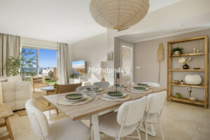 Con una superficie construida de aproximadamente 116,74 m², el ático ofrece espacios amplios y bien distribuidos. Los grandes ventanales aportan abundante luz natural y conectan el interior con el exterior de forma fluida. La terraza de 30,42 m² es uno de los grandes atractivos de la propiedad: un espacio ideal para relajarse, comer al aire libre y disfrutar de las vistas al mar y del entorno tranquilo.