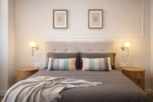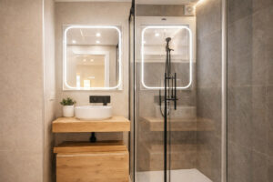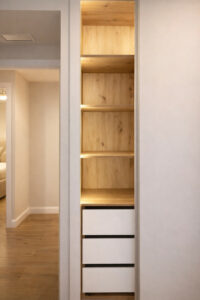 El apartamento dispone de tres amplios dormitorios, todos con armarios empotrados nuevos, forrados e iluminados, además de ventiladores de techo y un sistema de aire acondicionado de gran potencia (8.000 frigorías) que asegura el máximo confort durante todo el año. El dormitorio principal cuenta con baño en suite con ducha moderna y acceso a un balcon que da al interior de la urbanización, mientras que los otros dos dormitorios comparten un segundo baño completo. Los dos baños destacan por su renovación integral con acabados de primera, cada uno con ventanas al exterior para una perfecta ventilación. Incluyen mamparas correderas de cristal, pensadas para ofrecer mayor comodidad y elegancia.