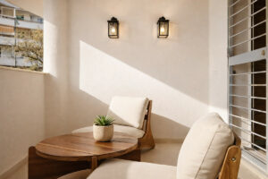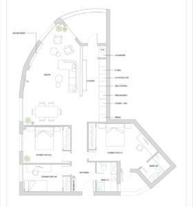 La distribución interior incluye un amplio y luminoso salón con acceso directo a una acogedora terraza privada de 7 m² con vistas abiertas.La cocina de diseño, totalmente equipada y con lavandería integrada, ofrece un espacio práctico y elegante, conectado con la terraza y abierto al salón mediante una amplia península.
