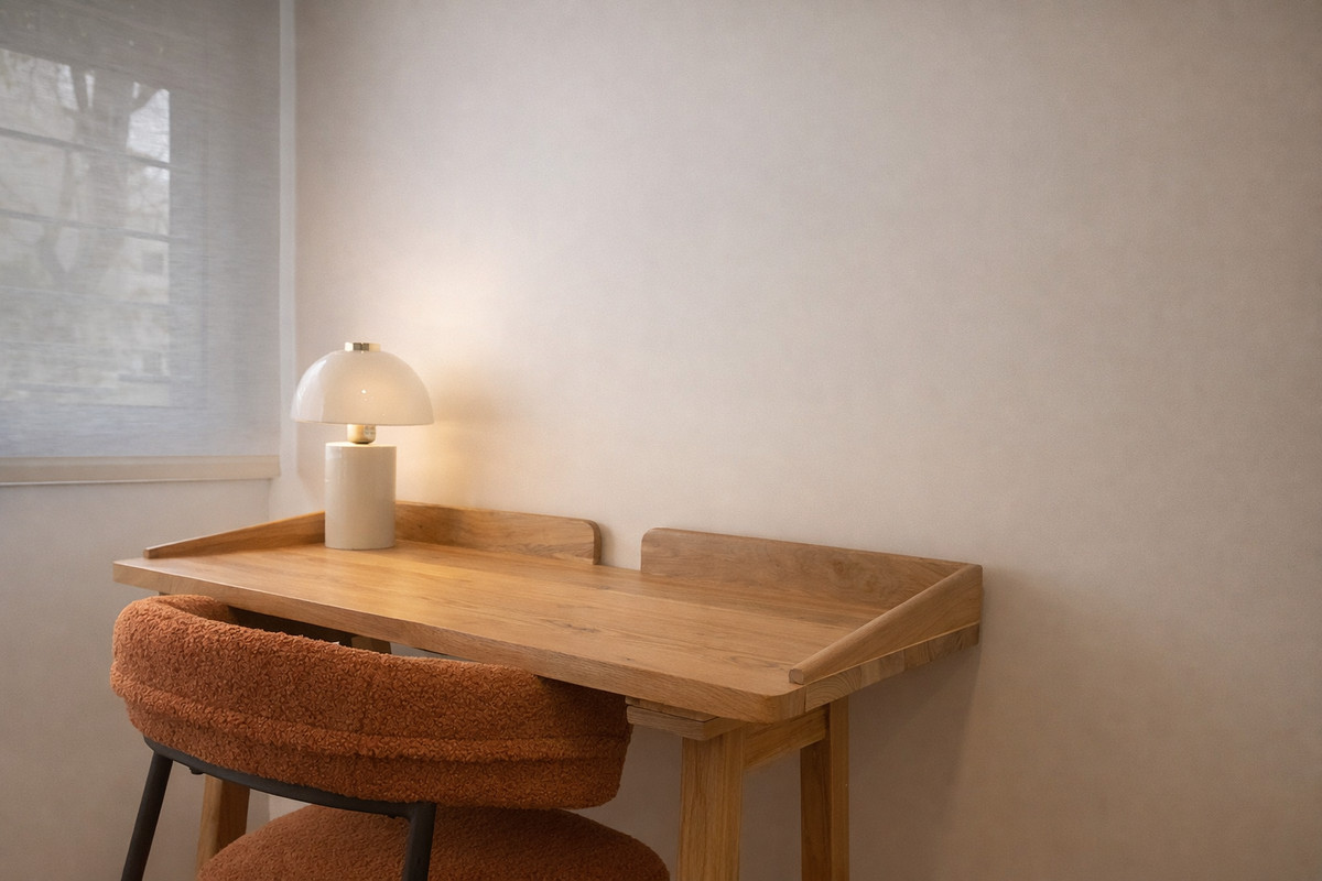 La distribución interior incluye un amplio y luminoso salón con acceso directo a una acogedora terraza privada de 7 m² con vistas abiertas.La cocina de diseño, totalmente equipada y con lavandería integrada, ofrece un espacio práctico y elegante, conectado con la terraza y abierto al salón mediante una amplia península.
