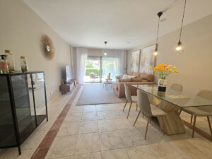 Elegante apartamento en planta baja ubicado en la prestigiosa urbanización Benatalaya. Con un diseño luminoso y espacioso, ofrece un salón-comedor de concepto abierto con salida directa a una amplia terraza y jardín privado.