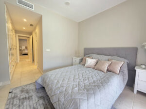 La vivienda cuenta con tres dormitorios, cada uno con su baño en suite, una cocina totalmente equipada con zona de lavandería, además de dos plazas de garaje y trastero.
