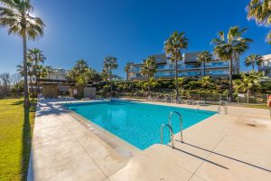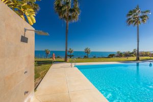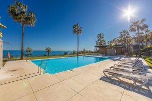 Apartamento de estilo moderno localizado en primera línea de playa, con preciosas vistas al mar desde donde contemplar espectaculares amaneceres, situado en la magnífica urbanización Horizon Beach y construido por el prestigioso promotor Taylor Wimpey, destacando por su diseño contemporáneo y sus calidades superiores. La comunidad, impecablemente cuidada, ofrece acceso directo a la playa, exuberantes jardines mediterráneos y una elegante piscina exterior climatizada para disfrutar durante todo el año, además de distinguidas zonas comunes pensadas para el descanso, con cómodas tumbonas y una amplia terraza cubierta que invita a relajarse en un entorno privilegiado. Se encuentra a solo 5 minutos en coche del centro de Estepona y del Puerto de la Duquesa, con todos los servicios a mano, e incluye una cómoda plaza de aparcamiento en garaje subterráneo y un amplio trastero situado justo frente a la plaza, convirtiéndolo en una excelente oportunidad frente al mar que merece ser visitada.