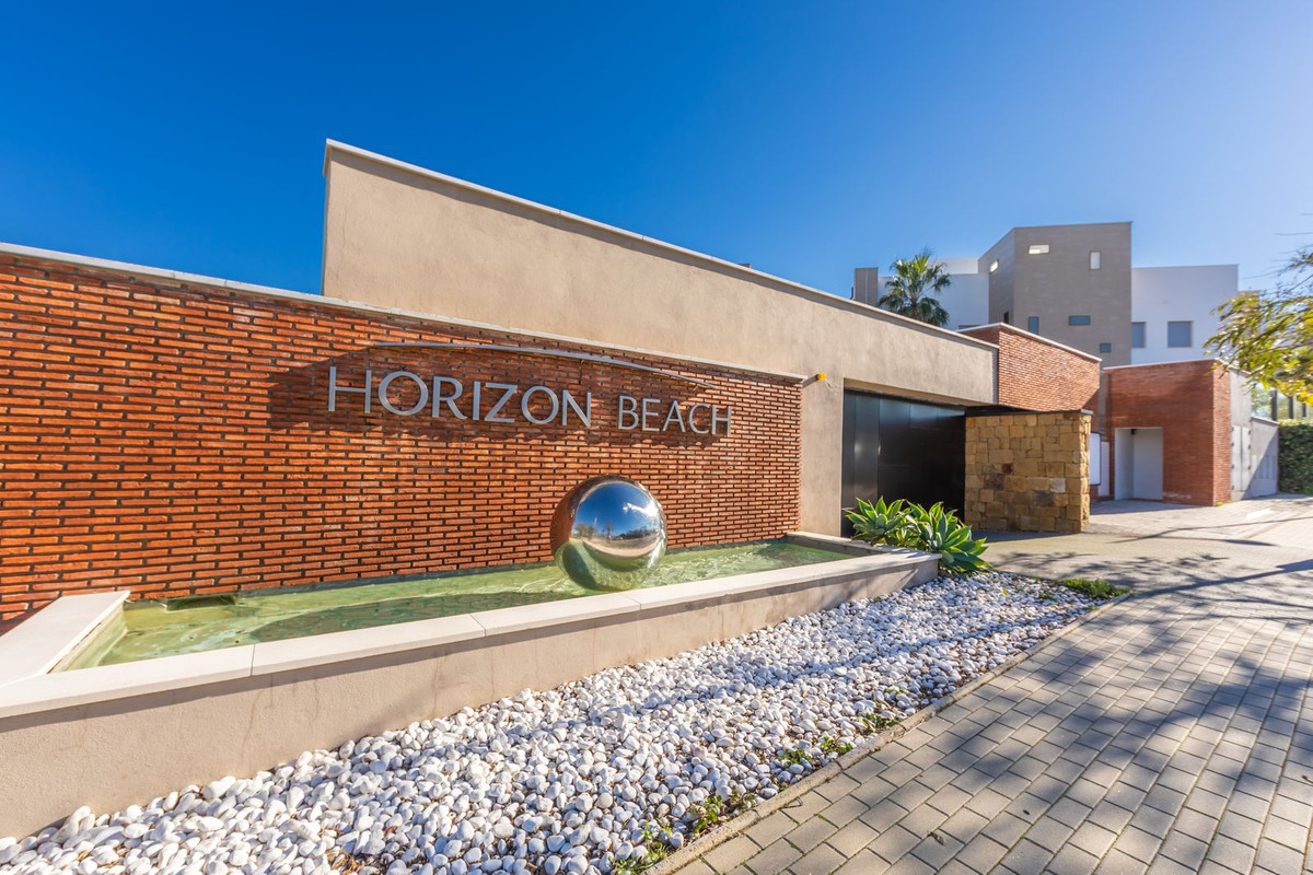 Apartamento de estilo moderno localizado en primera línea de playa, con preciosas vistas al mar desde donde contemplar espectaculares amaneceres, situado en la magnífica urbanización Horizon Beach y construido por el prestigioso promotor Taylor Wimpey, destacando por su diseño contemporáneo y sus calidades superiores. La comunidad, impecablemente cuidada, ofrece acceso directo a la playa, exuberantes jardines mediterráneos y una elegante piscina exterior climatizada para disfrutar durante todo el año, además de distinguidas zonas comunes pensadas para el descanso, con cómodas tumbonas y una amplia terraza cubierta que invita a relajarse en un entorno privilegiado. Se encuentra a solo 5 minutos en coche del centro de Estepona y del Puerto de la Duquesa, con todos los servicios a mano, e incluye una cómoda plaza de aparcamiento en garaje subterráneo y un amplio trastero situado justo frente a la plaza, convirtiéndolo en una excelente oportunidad frente al mar que merece ser visitada.