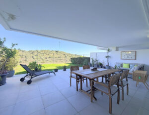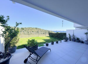 Fantástico apartamento en planta baja con amplio jardín privado y vistas abiertas al mar y la montaña, situado en Estepona, en una urbanización contemporánea finalizada en 2021, a solo 5 minutos en coche del centro y a 15 minutos de Sotogrande.