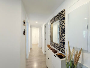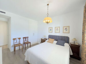 La propiedad se presenta en estado impecable, con reformas y acabados de alta calidad. El salón, comedor y cocina completamente equipada forman un espacio integrado, con armarios a medida que optimizan el almacenamiento. Desde aquí se accede a una amplia terraza cubierta, perfecta para disfrutar todo el año. Entre sus mejoras destacan persianas eléctricas con sistema de bloqueo.