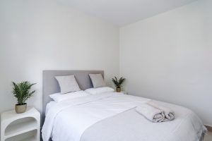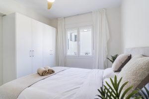 El apartamento se presenta en excelentes condiciones, ya que ha sido recientemente reformado con altos estándares de calidad y se entrega completamente amueblado, permitiendo su ocupación inmediata. La vivienda dispone de tres dormitorios, una cocina contemporánea y un cuarto de lavandería independiente. El interior cuenta con comodidades como aire acondicionado, doble acristalamiento, internet de fibra óptica y puerta blindada, garantizando confort y seguridad. Una terraza privada y un balcón ofrecen agradables espacios para disfrutar de vistas urbanas y parciales al mar, mientras que los grandes ventanales permiten la entrada de abundante luz natural.