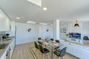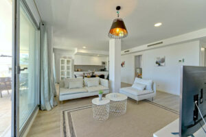 El apartamento dispone de una gran terraza con hermosas vistas al mar y a la montaña, perfecta para relajarse o disfrutar de veladas al aire libre. Incluye cocina totalmente equipada, estancias luminosas, plaza de aparcamiento subterráneo y acceso a la piscina comunitaria.