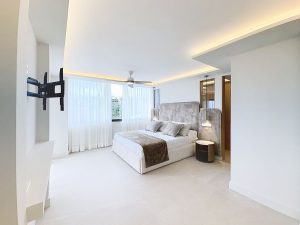 La ubicación es otro de sus grandes atractivos: a escasos minutos de la playa, en un entorno rodeado de reconocidos campos de golf y próximo al nuevo Colegio Internacional Atlas, lo que la convierte en una opción especialmente interesante para familias. Sus excelentes conexiones permiten acceder fácilmente a los aeropuertos de Málaga y Gibraltar, facilitando un estilo de vida internacional sin renunciar a la cercanía.