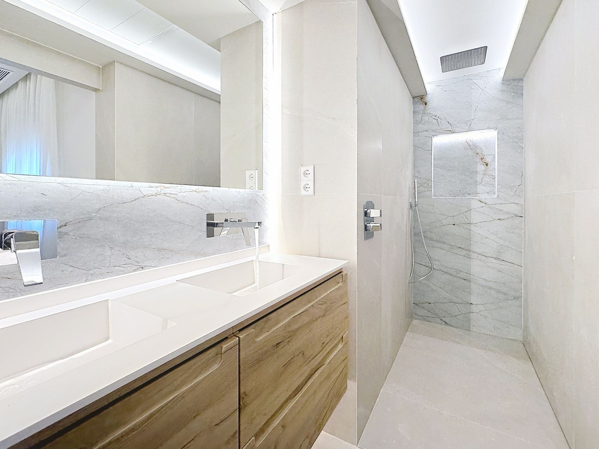 Imagine despertarse cada mañana con la luz del Mediterráneo filtrándose suavemente por las ventanas, el silencio de una urbanización impecablemente cuidada y la brisa marina acompañando ese primer café del día. Todo ello desde una amplia terraza acristalada con vistas al mar, concebida para disfrutarse durante todo el año. Así se vive en este elegante apartamento en esquina ubicado en la exclusiva New Golden Mile de Estepona.