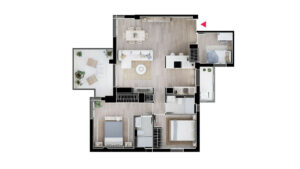 Tú sueño de vivir en los boliches, en pleno centro, en un piso de 108m con una distribución moderna, actual, con materiales de alta calidad, se entrega con la cocina y el baño amueblado, el resto de la vivienda los muebles son renders y no están incluidos.