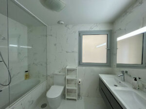 El dormitorio principal cuenta con baño en suite, mientras que las otras dos habitaciones comparten un segundo baño completo.