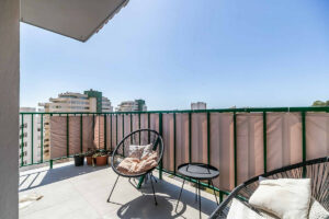 La terraza en esquina, orientada al suroeste, ofrece vistas panorámicas y vistas al mar, además de una luminosidad excepcional durante todo el día, convirtiéndose en el espacio perfecto para relajarse, desayunar al aire libre o disfrutar de atardeceres inolvidables.