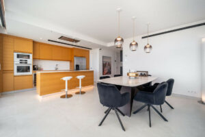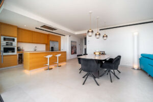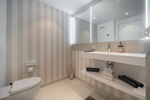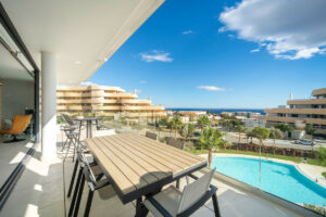 Apartamento de lujo con orientación suroeste, en la exclusiva urbanización de Higuerón Oeste, con 3 dormitorios, 3 baños de los cuales dos son ensuite, amplio salón comedor, cocina americana totalmente amueblada y equipada con electrodomésticos BOSCH, zona de lavandería con lavadora/secadora, gran terraza de 35m2 con preciosas vistas al mar y los jardines. Dormitorio principal con vestidor, baño ensuite y acceso a una terraza de 7m2. Aire acondicionado frío y calor, videoportero, sistema domótico, armarios empotrados en todos los dormitorios, toldos eléctricos en terraza principal, preinstalación de alarma, suelo radiante en baños. Incluye dos plazas de garaje (con cargador eléctrico) y un trastero.