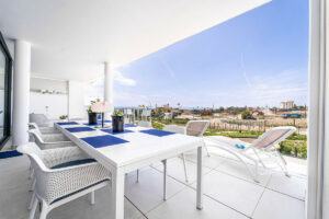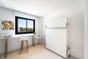 Apartamento de lujo con orientación oeste, en la exclusiva urbanización de Higuerón Oeste, con 3 dormitorios, 2 baños, amplio salón comedor, cocina americana totalmente amueblada y equipada con electrodomésticos Bosch incluyendo frigorífico americano y vinoteca, zona de lavandería con lavadora/secadora, gran terraza de 54m2 con vistas al jardín. Dormitorio principal con vestidor, baño ensuite abierto al dormitorio y acceso a una pequeña terraza de 5m2. Aire acondicionado frío y calor, videoportero, sistema domótico, armarios empotrados en todos los dormitorios y recibidor, toldos eléctricos en terraza principal y cortinas eléctricas en salón, preinstalación de alarma, suelo radiante en ambos baños. Incluye dos plazas de garaje y un trastero.