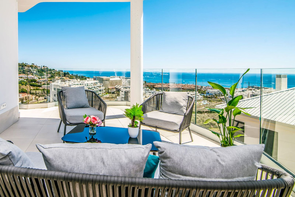 Este elegante apartamento de 3 dormitorios y 2 baños se encuentra en la prestigiosa urbanización Las Lomas 2. Ofrece 128 m² de refinados espacios interiores y una terraza de 26 m² orientada al sur con vistas panorámicas al mar. Se entrega en excelentes condiciones, completamente amueblado y con una distribución moderna y funcional, brindando una auténtica experiencia de vida llave en mano en el exclusivo entorno de Reserva del Higuerón.