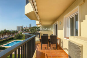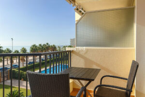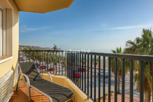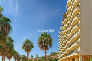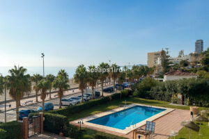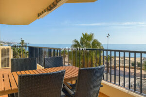 Este apartamento de planta media, muy bien ubicado, disfruta de una posición verdaderamente privilegiada en primera línea del Paseo Marítimo de Fuengirola, justo frente a la playa y a pocos minutos a pie de la estación de tren de Carvajal.