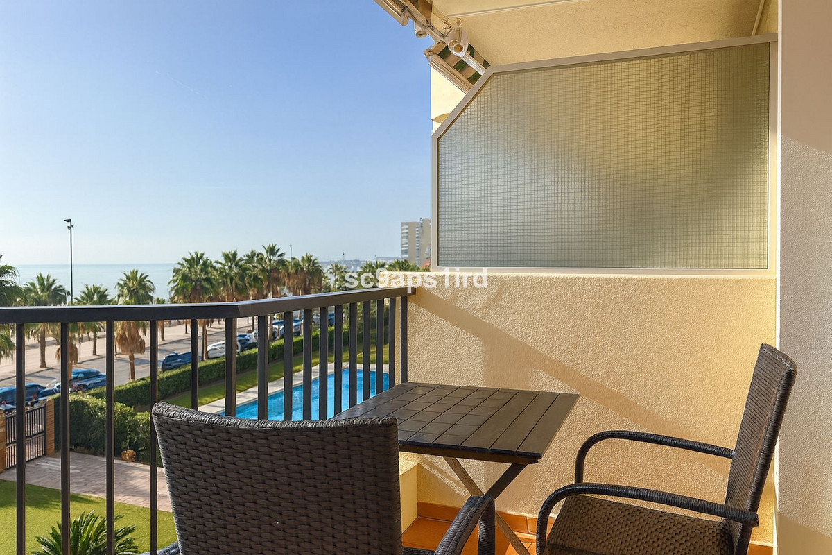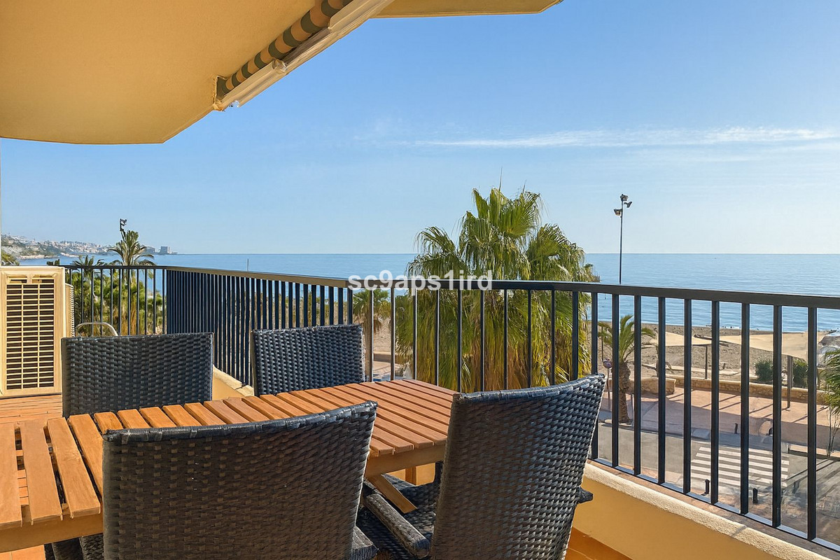 Este apartamento de planta media, muy bien ubicado, disfruta de una posición verdaderamente privilegiada en primera línea del Paseo Marítimo de Fuengirola, justo frente a la playa y a pocos minutos a pie de la estación de tren de Carvajal.