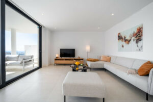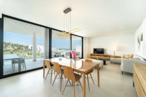 El apartamento cuenta con un amplio interior distribuido en tres dormitorios y dos baños, con una conexión fluida hacia una impresionante terraza envolvente de gran tamaño, ideal para disfrutar del estilo de vida mediterráneo durante todo el año. Construido en 2023 y conservado en excelentes condiciones, ha tenido un único propietario y no ha sido utilizado como alquiler vacacional.