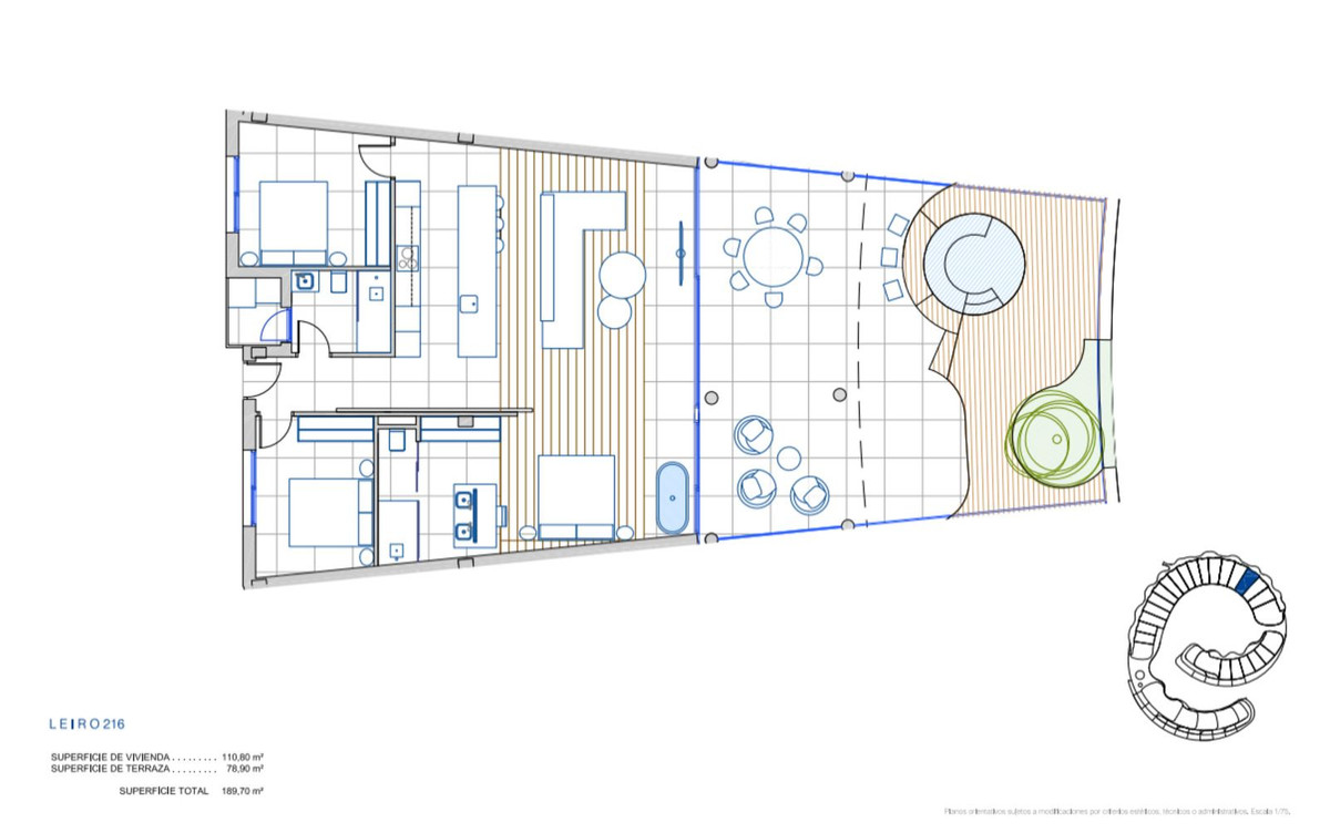 Paquete opcional completamente amueblado disponible, con mobiliario de diseñador de alta calidad.