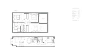 En la planta superior: 3 dormitorios, 2 baños y una terraza orientada al sur.