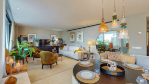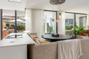 Esta exclusiva residencia está elegantemente amueblada con muebles de diseño de alta calidad y ofrece 3 amplios dormitorios, 2 baños completos (uno en suite) y calefacción por suelo radiante.