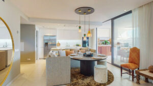 Sala de estar: Amplia y luminosa, con puertas de cristal de suelo a techo que dan a la terraza. Amplios salones y comedores diseñados para un entretenimiento refinado y una vida relajada.