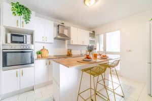 La propiedad cuenta con 3 amplios dormitorios y 2 baños completos, ofreciendo un espacio ideal tanto para familias como para inversión. Su orientación es norte en el salón, lo que aporta frescura y luz suave durante todo el día, y oeste en cocina y dormitorios, permitiendo disfrutar de agradables atardeceres.