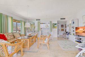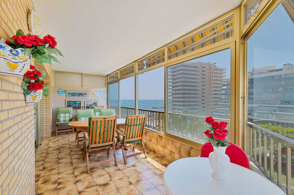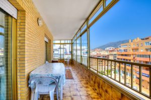 Amplio apartamento situado en el Paseo Marítimo entre Fuengirola y Los Boliches. El apartamento se encuentra en la esquina trasera del edificio y cuenta con amplias terrazas acristaladas en dos lados, lo que le permite disfrutar del sol tanto por la mañana como por la tarde y de vistas al mar y a la montaña. La superficie total de las terrazas es de 60 m².
