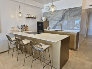 Este amplio apartamento de tres dormitorios y tres cuartos de baño con una perfecta orientación sur, se encuentra en una segunda planta y tiene vistas completamente abiertas al mar y toda la bahía de Marbella. En su terraza tiene espacio suficiente para un área de relajación y otra donde poder disfrutar de inolvidables veladas frente al mar con familiares y amigos, cenas al fresco o simplemente tumbarse cómodamente a escuchar las olas del mar con un buen libro. Una nueva y elegante distribución alberga 3 dormitorios con baño en suite y una espectacular cocina de diseño de planta abierta donde podrá disfrutar de una hermosa vista al mar Mediterráneo mientras cocina sus platos favoritos o toma una copa de vino con sus amigos.