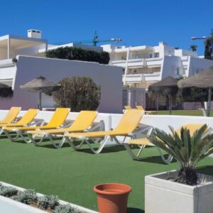 El complejo cerrado cuenta con conserje físico, dos piscinas para adultos y para niños, y tiene además la comodidad de disponer de un restaurante para el disfrute de los residentes y sus invitados durante la temporada de verano. Por supuesto cuenta también con salida directa a la playa y tumbonas a pie de playa.