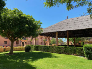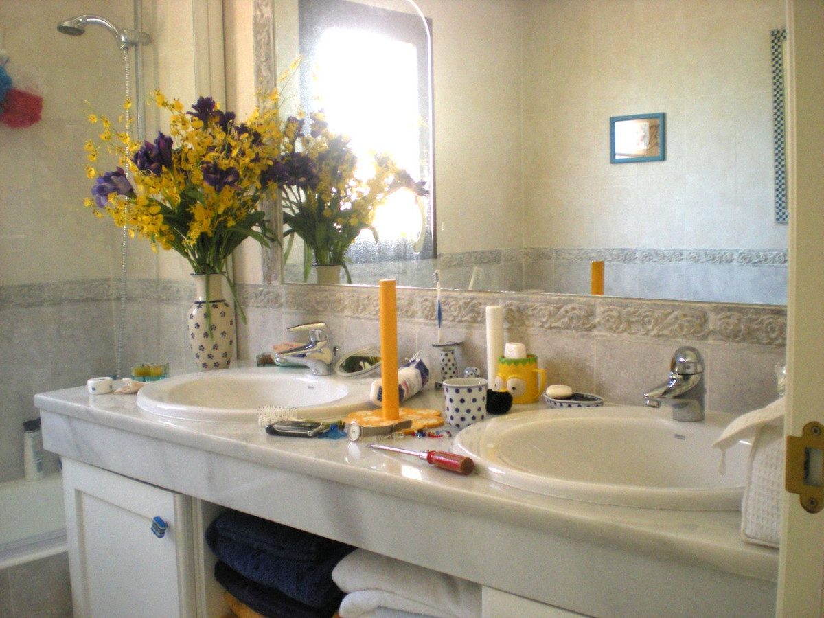 Esta propiedad está construida con excelentes calidades y consta de: vestíbulo; aseo de invitados; amplio salón-comedor con acceso a gran terraza cubierta muy soleada con vistas a la piscina y a los jardines; cocina independiente totalmente equipada con electrodomésticos lavadero, 3 dormitorios con armarios empotrados; 2 baños, el dormitorio principal con baño en suite. Orientación sur.