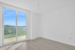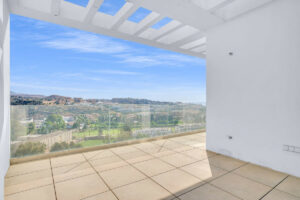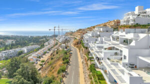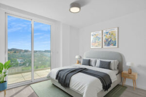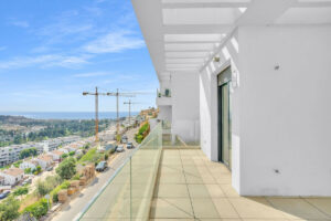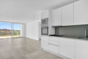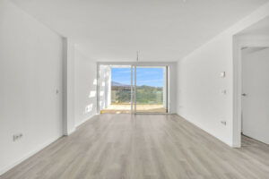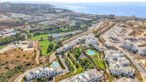 Este moderno apartamento de nueva construcción de 3 dormitorios y 2 baños se ubica en la primera línea dentro de la urbanización, en la fila inferior, lo que lo sitúa más cerca de la entrada peatonal. Su ubicación lo convierte en uno de los pocos con vistas panorámicas al mar sin ningún edificio enfrente, lo que garantiza privacidad y sin posibilidades de futuros desarrollos que bloqueen las vistas.