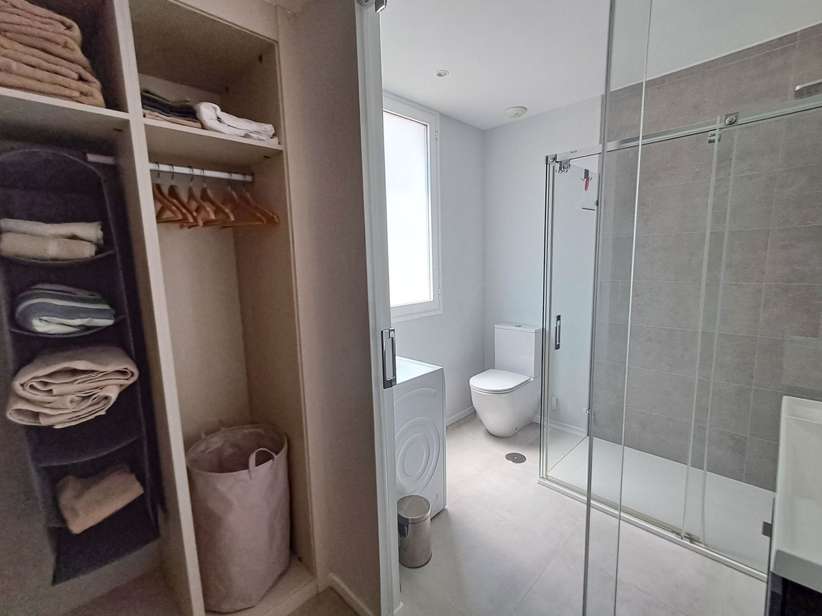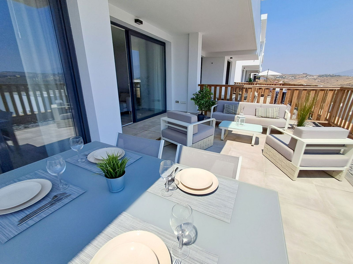 La propiedad te recibe a la entrada con una cocina de concepto abierto, moderna y luminosa, que a su vez da paso al salón-comedor. Desde el salón, se accede a su espléndida terraza con vistas al mar, perfecta para los amantes del sol que desean disfrutar del exterior con el clima mediterráneo. Todo con un diseño elegante y sutil, ideal para descansar y relajarse.