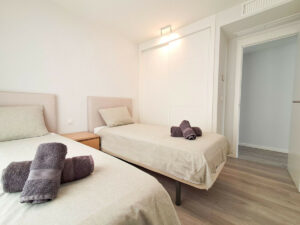 A continuación, la vivienda se distribuye en dormitorio principal con acceso a la terraza y baño en-suite moderno, que además ofrece un vestidor abierto. Siguiendo por el pasillo, encontramos dos dormitorios más, ambos con armarios empotrados, y un segundo baño completo que da servicio a ambas habitaciones.