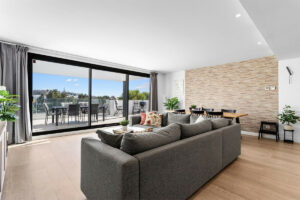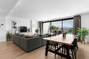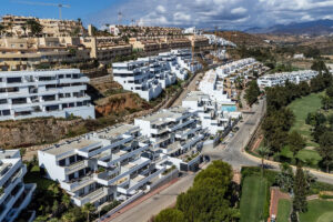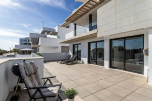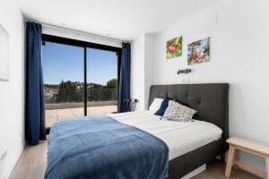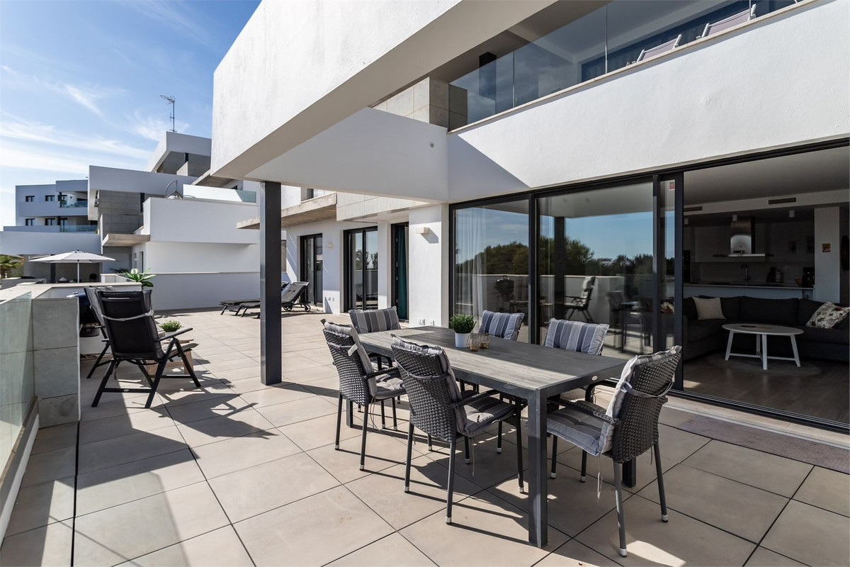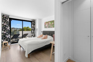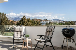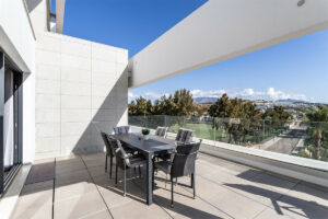Este moderno apartamento ofrece una distribución muy bien pensada con tres amplios dormitorios, siendo el principal el que cuenta con su propio baño en suite. Desde cada dormitorio se accede directamente a la generosa terraza de 80 m², donde se puede disfrutar del sol de la mañana y de las tranquilas vistas al campo de golf y a la frondosa vegetación.
