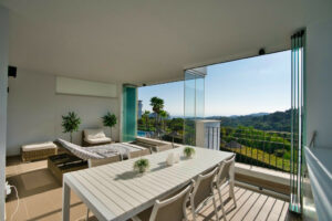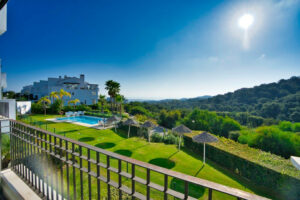 Apartamento de tres dormitorios con bonitas vistas al mar en el complejo La Floresta Sur en La Mairena. Ofrece además dos cuartos de baño equipados, cocina de estilo moderno completamente equipada, amplio y luminoso salón con acceso a la terraza cubierta y acristalada. Dispone de aire acondicionado frío y calor, ventanas de alta calidad y ascensor. Plaza de parking. Complejo cerrado con jardines y piscina. Los propietarios de la Floresta pueden utilizar todas las instalaciones de El Soto Club como golf, tenis, gimnasio, etc. Zona muy tranquila a 10 minutos en coche de la playa.