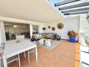 Este elegante apartamento de tres dormitorios se encuentra en la codiciada zona de La Mairena, en Marbella Este, y ofrece una armoniosa combinación de confort, estilo y comodidad. La vivienda cuenta con una generosa superficie construida de 148 m² complementada por una amplia terraza de 53 m², que proporciona espacio de sobra para vivir tanto en interior como en exterior. Ubicado dentro de una comunidad cerrada y protegida, los residentes se benefician de un entorno apacible con jardines comunitarios maduros y una gran piscina compartida, perfecta para la relajación y el ocio.
