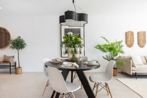 Orientación sureste que consta de 3 dormitorios y 2 baños. Cocina abierta conectada al salón-comedor. Amplia terraza con impresionantes vistas a la montaña y al mar. El luminoso salón y el dormitorio principal tienen acceso a la terraza, proporcionando un ambiente privado y tranquilo.