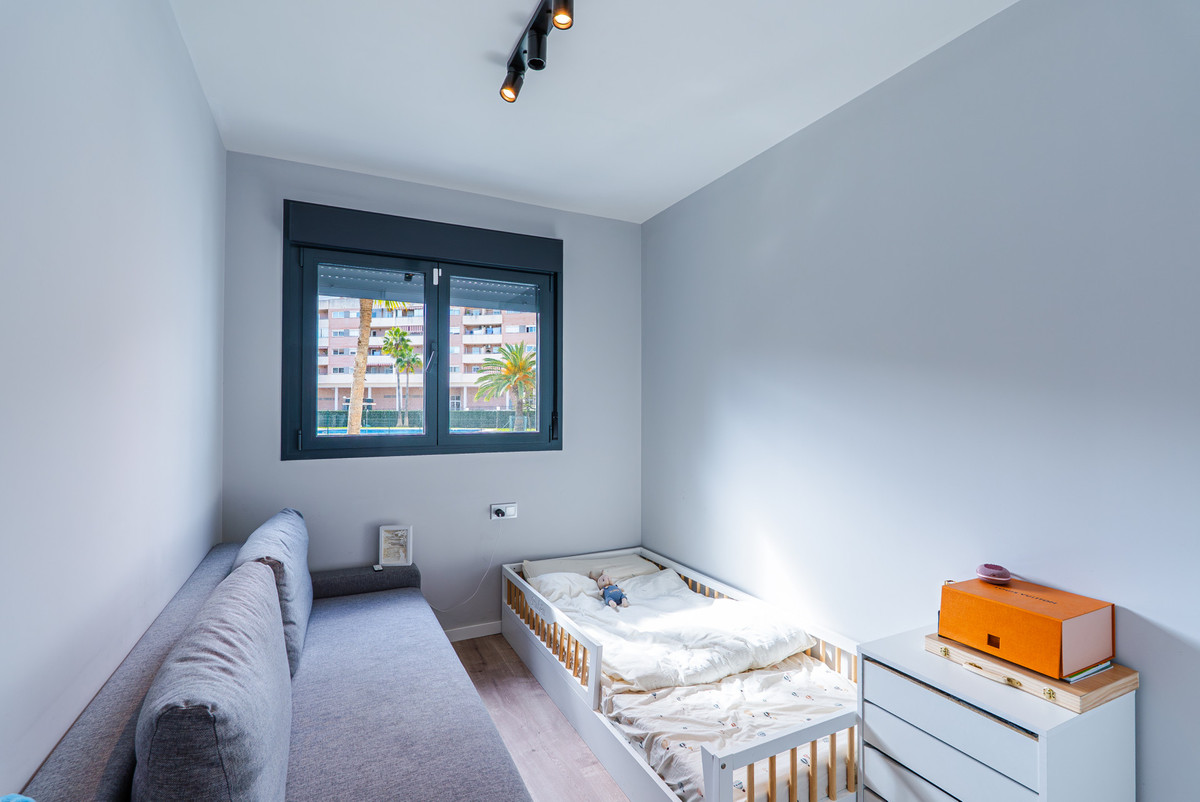 El dormitorio principal dispone de baño en suite, mientras que los otros dos dormitorios ofrecen versatilidad para familia, invitados o despacho. Se vende completamente amueblado y listo para entrar a vivir. Incluye plaza de garaje privada, trastero y acceso a piscina y jardines comunitarios.
