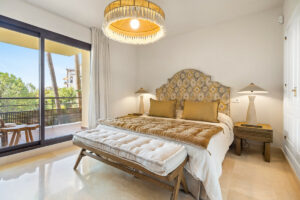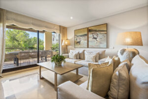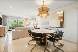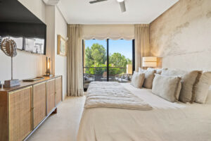 Descubre este luminoso y elegante apartamento de 3 dormitorios y 2 baños, ubicado en la codiciada comunidad de Los Pinos, dentro de Los Arqueros Golf & Country Club. Situado en un entorno tranquilo y seguro, la propiedad disfruta de una posición elevada con preciosas vistas a los jardines y al mar Mediterráneo.