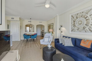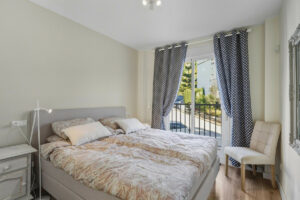 El apartamento se presenta en excelente estado, con una distribución inteligente que maximiza tanto la luz como el espacio. La luminosa zona de estar y comedor de planta abierta se integra a la perfección con una amplia terraza privada de 30 m², creando un espacio ideal para relajarse, entretener a invitados o simplemente disfrutar de las tranquilas vistas al golf y a los jardines. El suelo de madera cálida y los acabados de calidad aportan un aire de elegancia contemporánea, mientras que las ventanas de doble acristalamiento y el aire acondicionado frío/calor garantizan el máximo confort durante todo el año. La cocina totalmente equipada es a la vez elegante y funcional, ofreciendo abundante espacio de almacenamiento y encimera, así como un lavadero independiente.