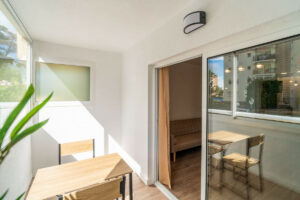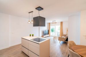El piso cuenta con 3 habitaciones y 2 baños, perfectos para familias o como inversión. Disfruta de una cocina equipada de diseño con una magnífica isla de cocina, un acogedor comedor y una amplia terraza cubierta con vistas a la ciudad. Además, podrás relajarte en la piscina común o jugar al tenis en las instalaciones del complejo, todo con la comodidad de un ascensor y la vivienda está dotada de tecnología de hogar inteligente.