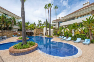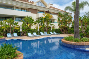 Este apartamento en planta baja con orientación suroeste está situado en la exclusiva zona residencial de Los Monteros, a sólo 3 minutos a pie de las playas más hermosas, conocida por su alta seguridad y el famoso club de playa La Cabane. Forma parte del único complejo de apartamentos de lujo existente en esta zona, que cuenta con jardines tropicales y una elegante piscina dentro de una comunidad totalmente cerrada.