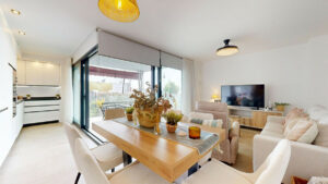 La propiedad cuenta con 3 amplios dormitorios, 2 baños completos (uno de ellos en suite), lista para entrar a vivir. El salón-comedor es luminoso y acogedor, con acceso directo a una terraza privada ideal para disfrutar del buen clima durante todo el año.