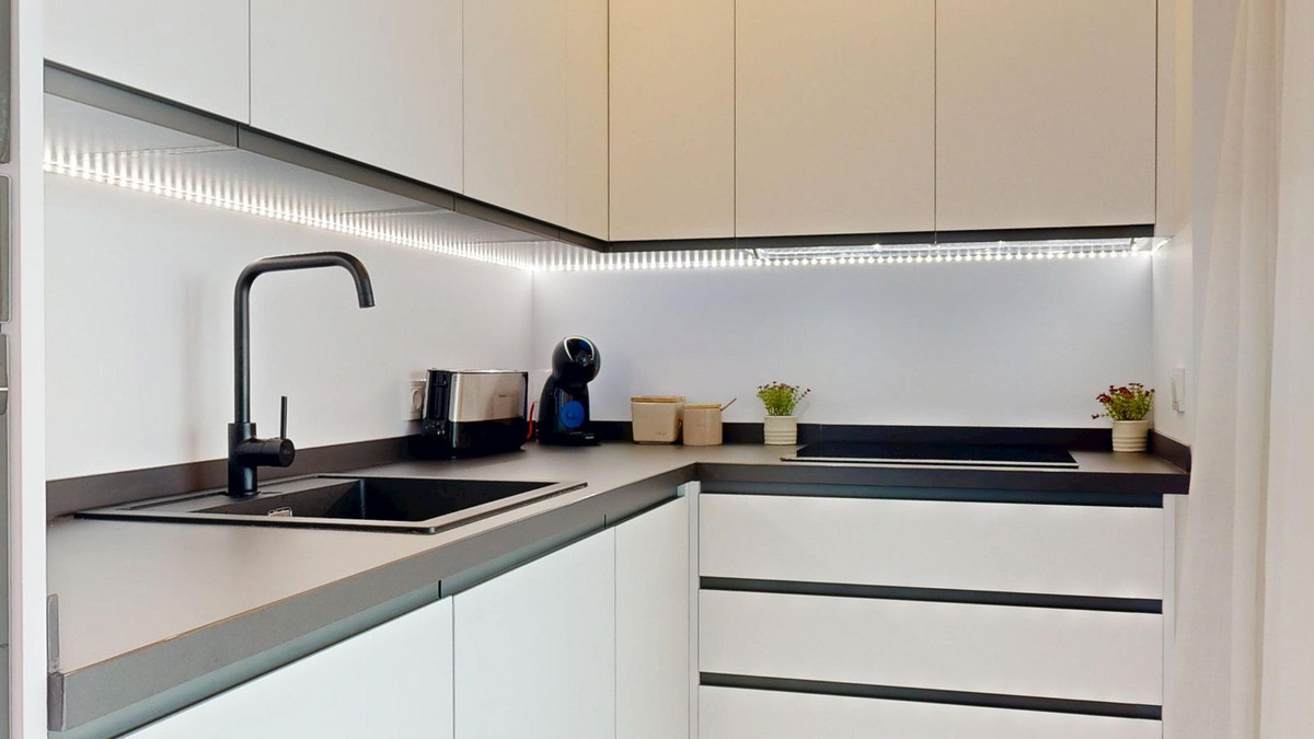 La cocina está completamente equipada y ofrece una distribución funcional perfecta tanto para el día a día como para reuniones familiares.