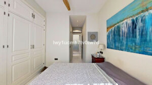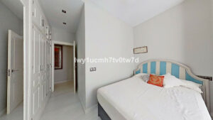 Los 2 dormitorios, uno con baño en suite, son cuidadosamente diseñados, cada uno de ellos cuenta con armarios empotrados y acabados de primera calidad, el tercer dormitorio ha sido convertido en vestidor. Los baños son elegantes y cuidados en cada detalle. La vivienda cuenta también con un patio privado interior con tendedero y lavadero.